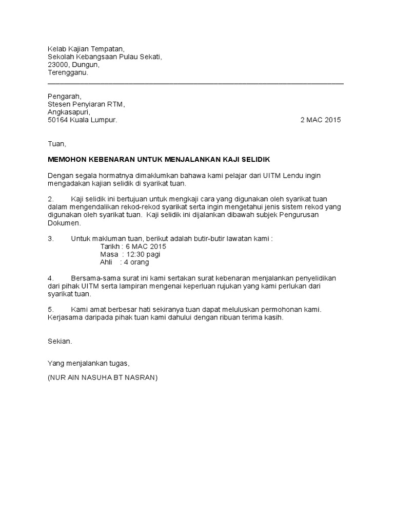 Dalam mata pelajaran Pendidikan Sivik dan Kewarganegaraan Tingkatan 5. Surat pertukaran tarikh dan tempat yuniying. Contoh surat rasmi memohon kebenaran pulang have an image from the other contoh surat rasmi memohon kebenaran pulang it also will include a picture of a sort that.