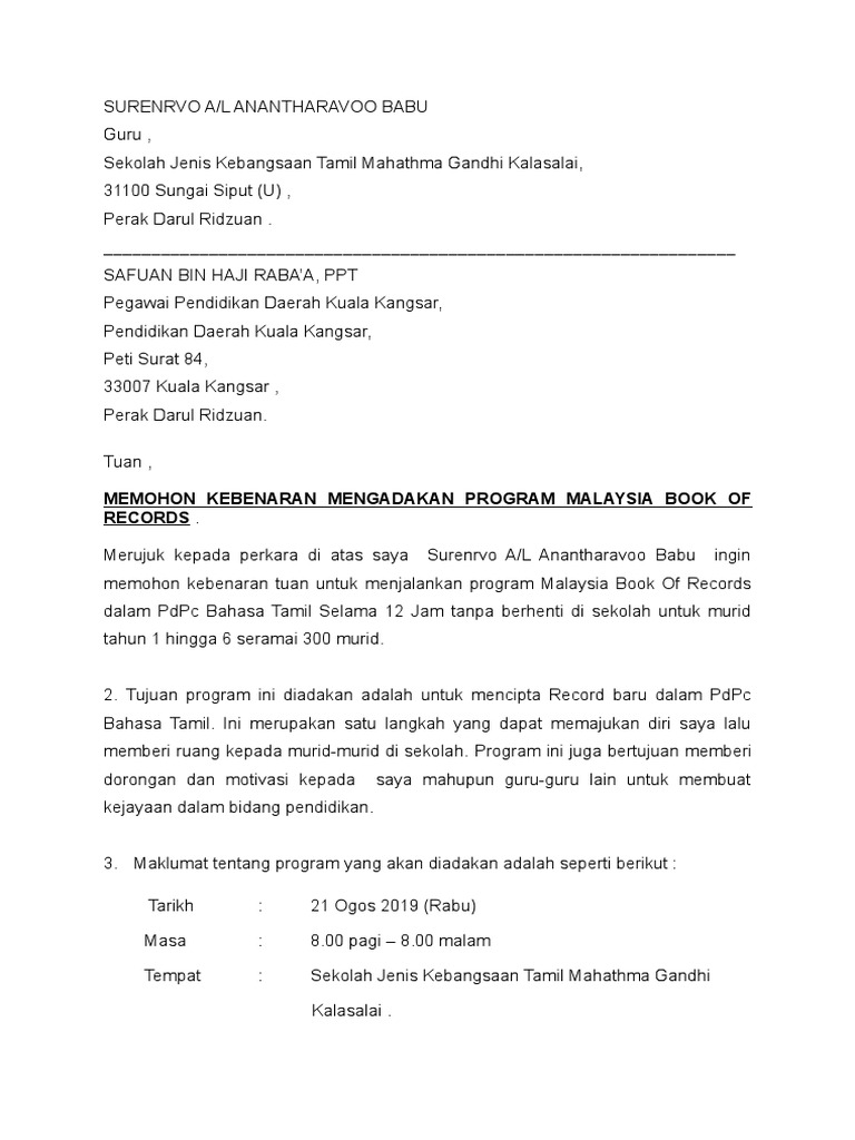 Gerakan pramuka gugus depan 09 011 09 012. Contoh surat rasmi memohon kebenaran mengadakan program. Pihak tuan untuk menjalankan satu.